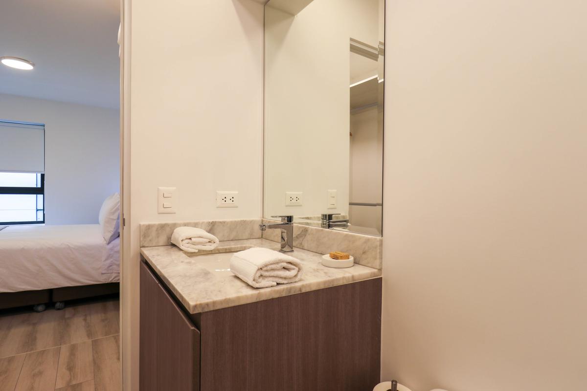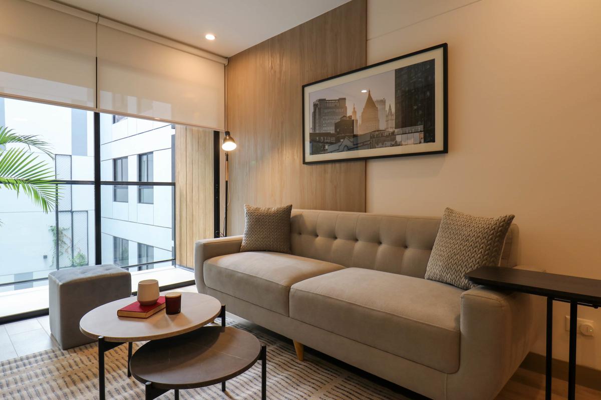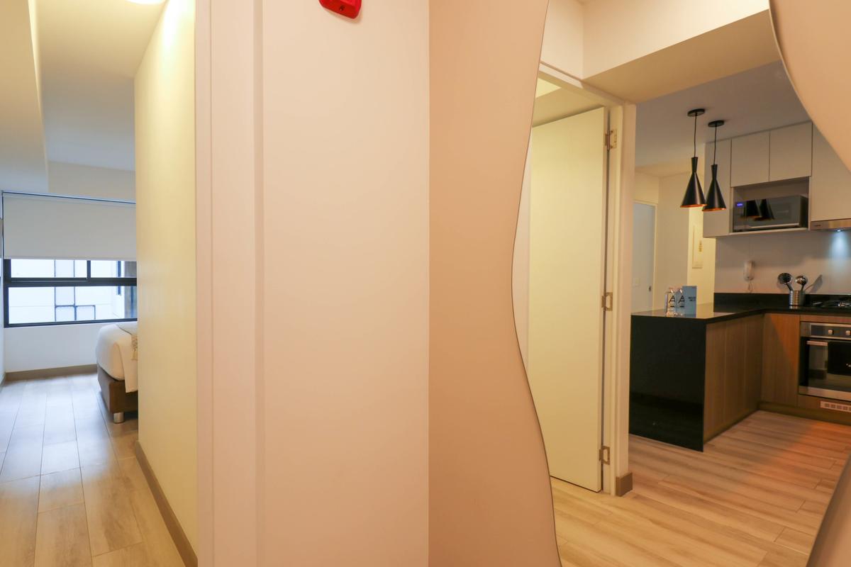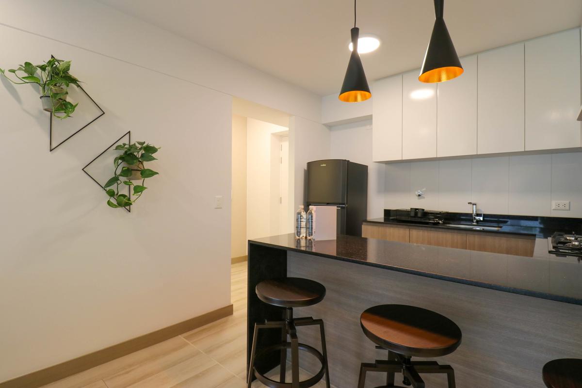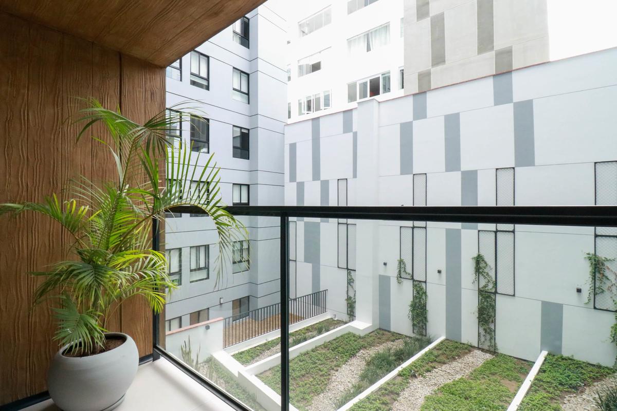 In the welcoming Miraflores neighborhood, this beautiful apartment it's very well located; just minutes away from Larcomar shopping center, Parque Kennedy, Virgen de Fatima Parish, and exclusive gyms. The area has currency exchange services, and labs centers in case you need to take a test, such as ROE and Multilab.