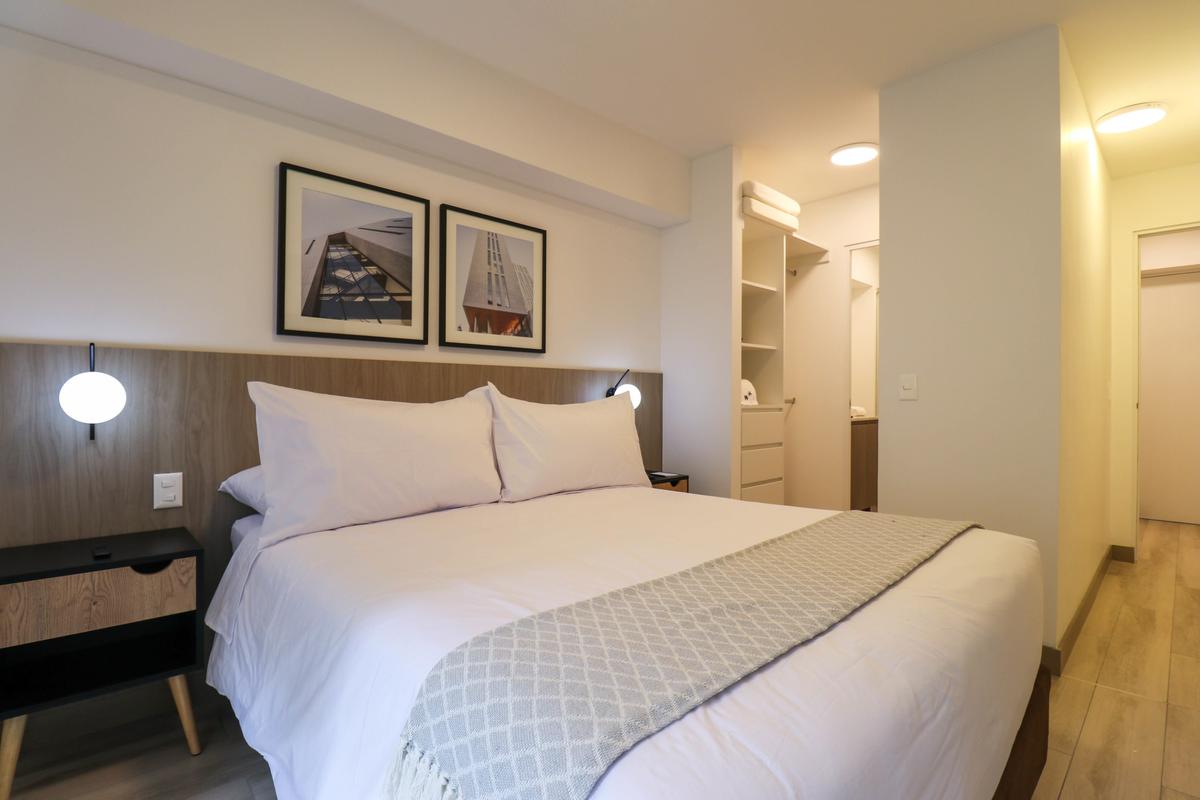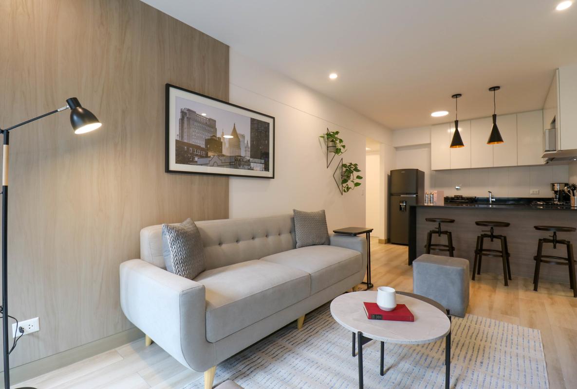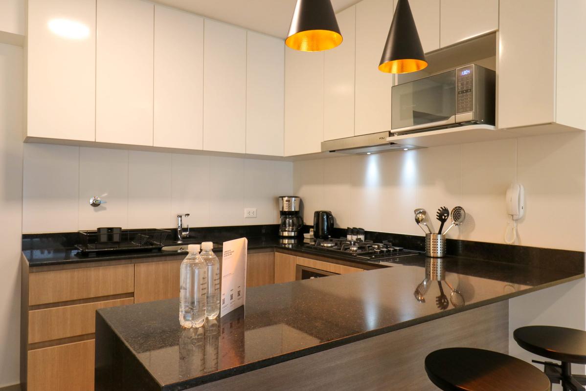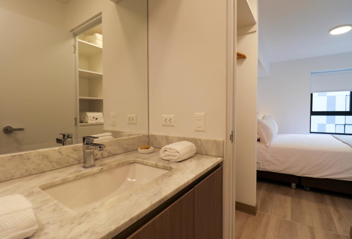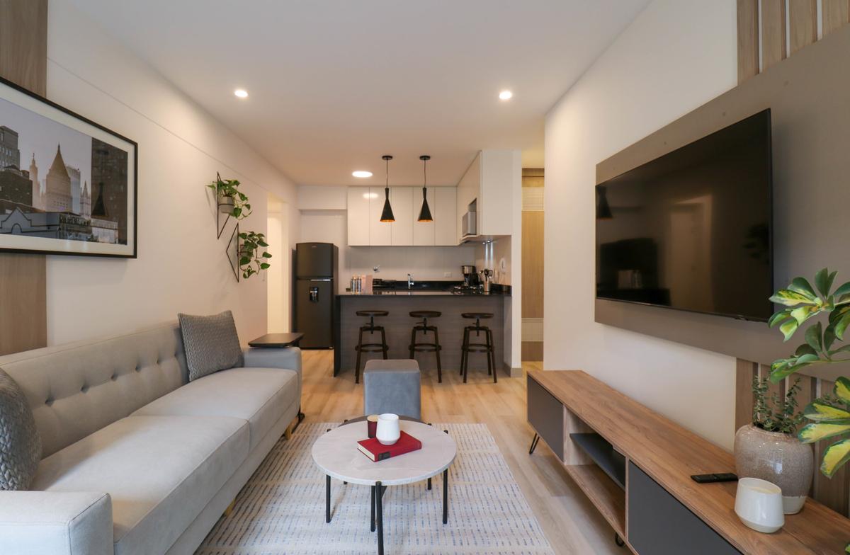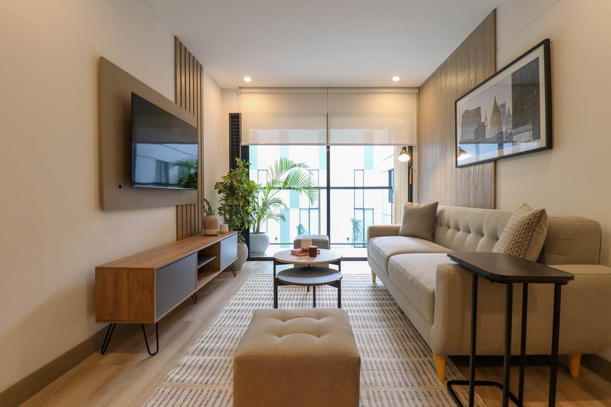In the welcoming Miraflores neighborhood, this beautiful apartment it's very well located; just minutes away from Larcomar shopping center, Parque Kennedy, Virgen de Fatima Parish, and exclusive gyms. The area has currency exchange services, and labs centers in case you need to take a test, such as ROE and Multilab.