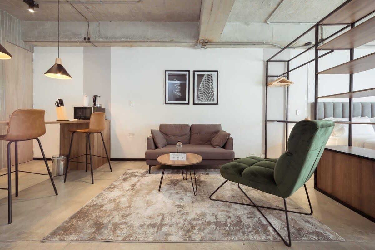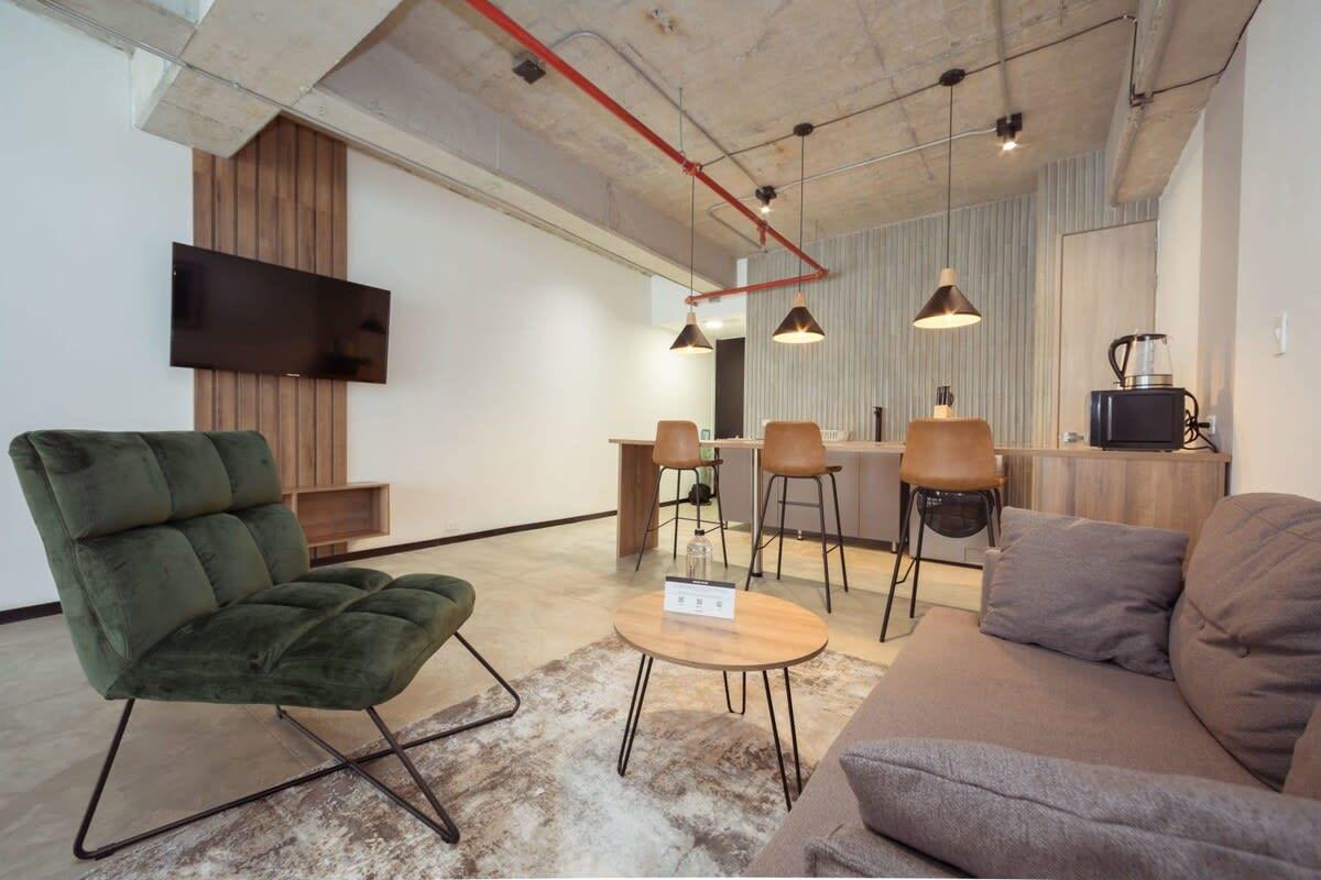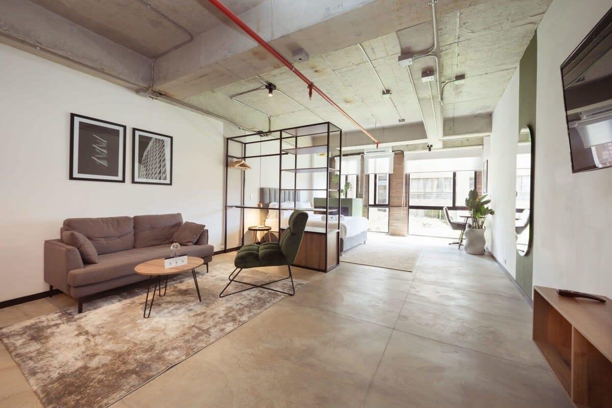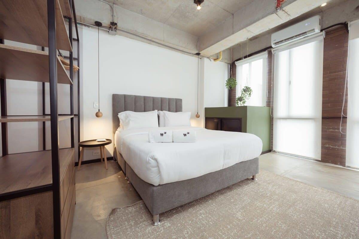 Located in the best area of ​​Medellin. This modern loft features, a queen size bed, a welcoming living room and a beautiful balcony. Ideal for business trips, families and small groups of friends who want to stay in a modern apartment with a great location. You will be walking distance to typical Colombian and international food restaurants, supermarkets, local art galleries, bars and cafes in the city.