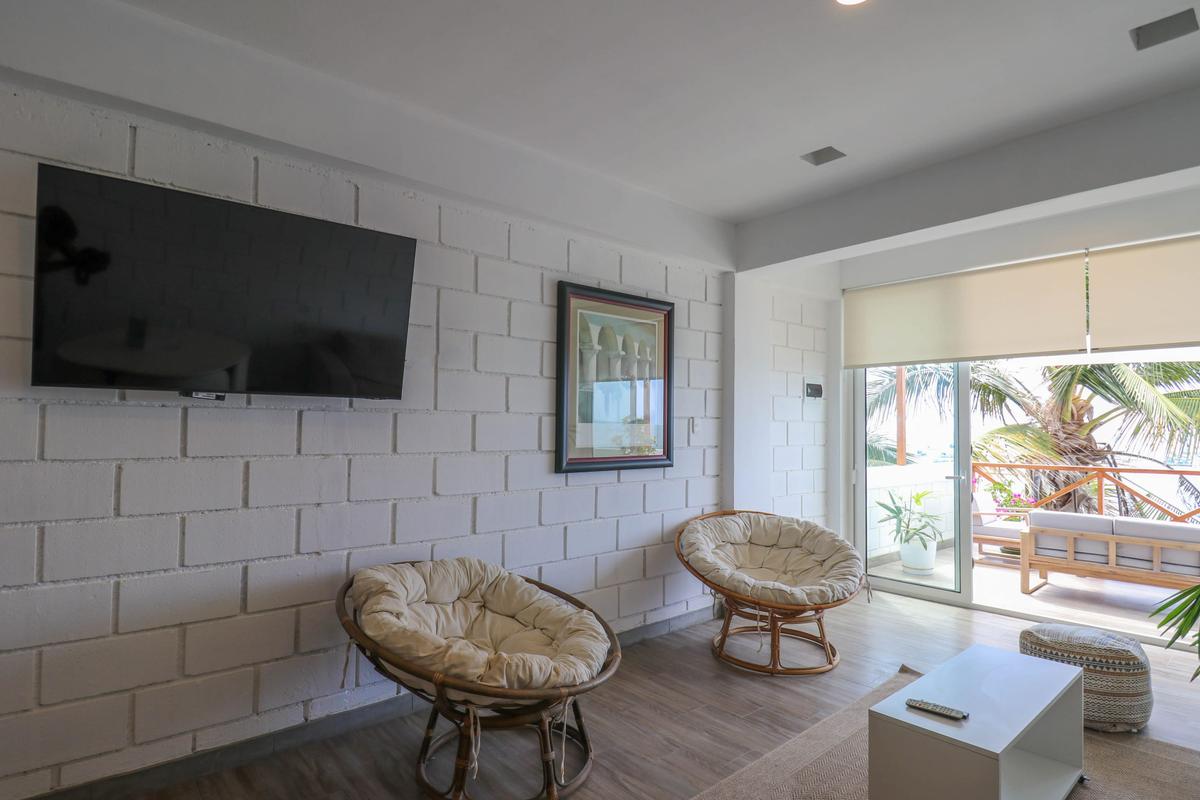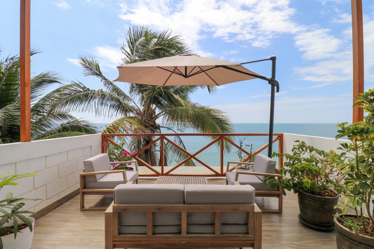 This beachfront property in Máncora offers ocean view lofts with air conditioning, fully equipped kitchens, and king-size beds. Enjoy direct beach access and a perfect blend of sophistication and relaxation. Attention! Regular water and power cuts occur. No water tank or generator available. Prepare for potential interruptions. Residents, please be aware of loud noise disruptions within the building.