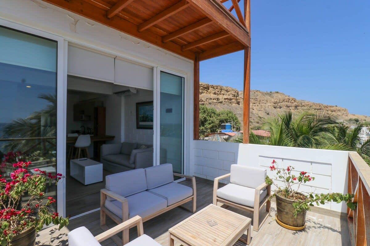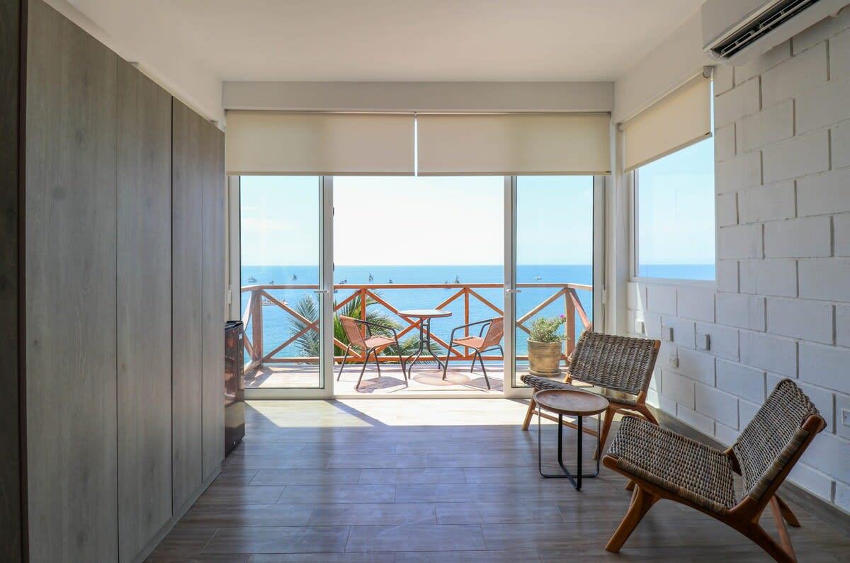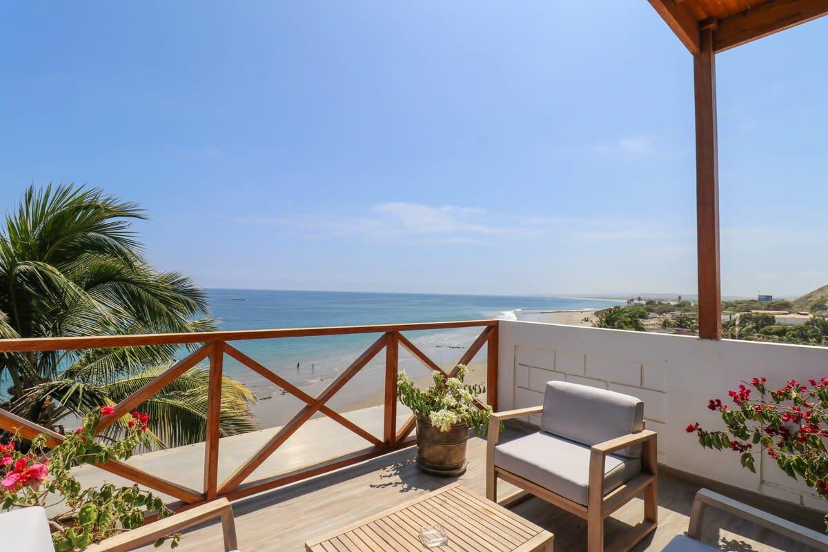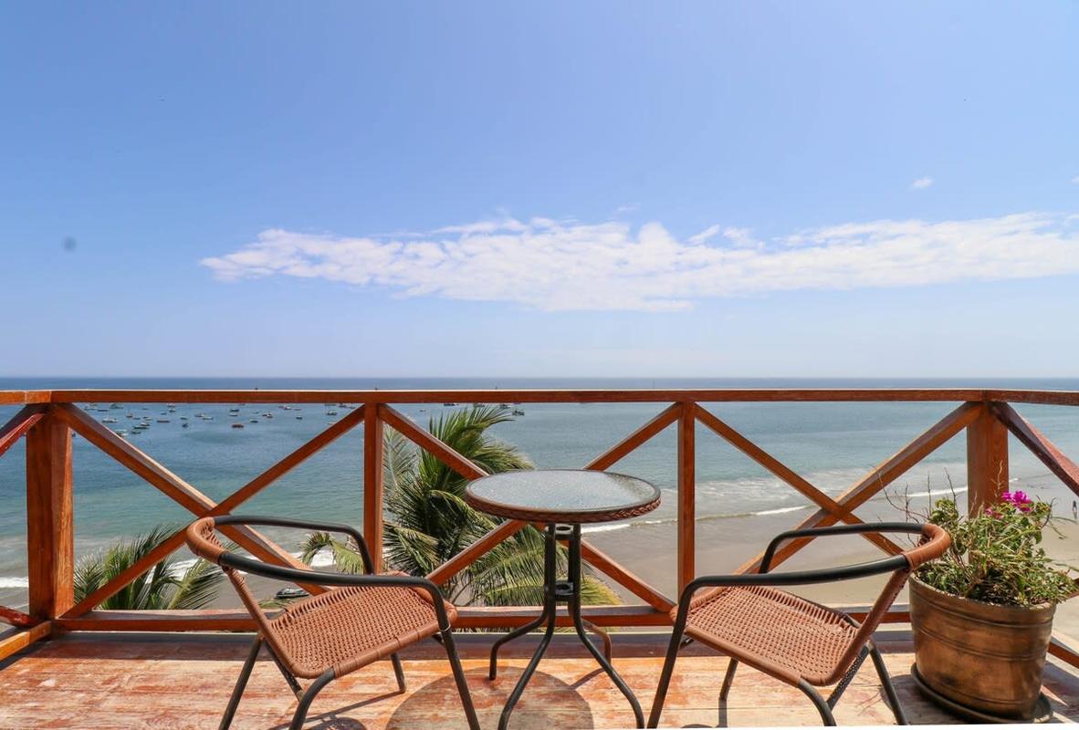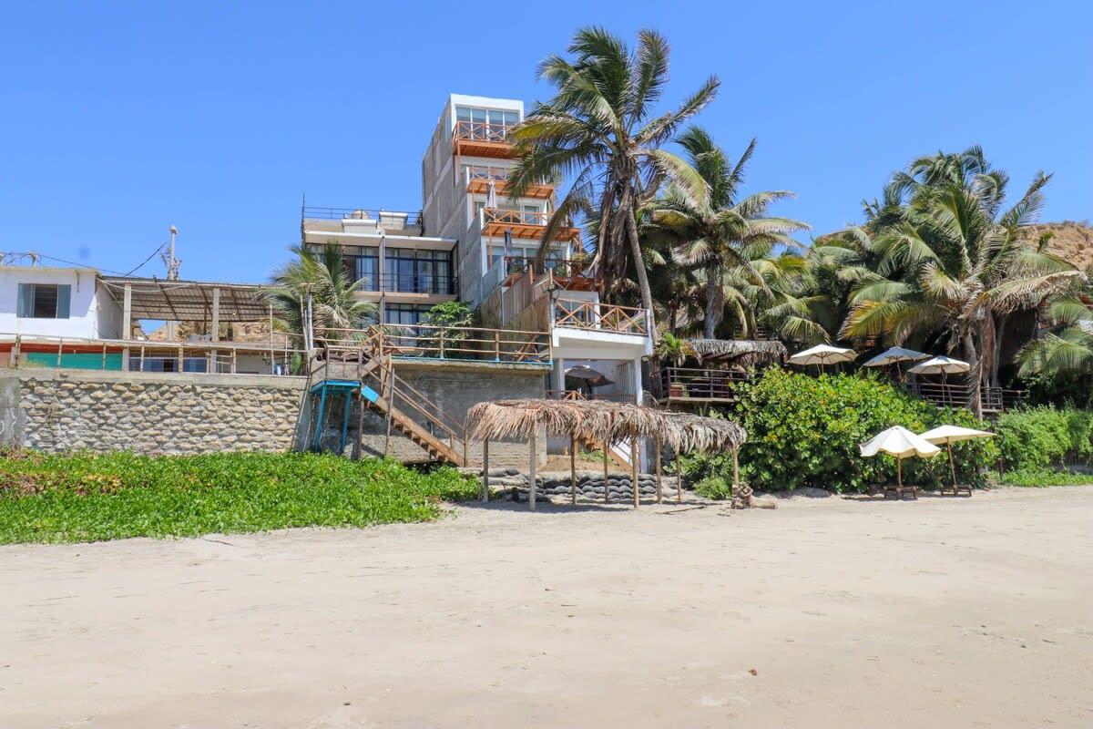This beachfront property in Máncora offers ocean view lofts with air conditioning, fully equipped kitchens, and king-size beds. Enjoy direct beach access and a perfect blend of sophistication and relaxation. Attention! Regular water and power cuts occur. No water tank or generator available. Prepare for potential interruptions. Residents, please be aware of loud noise disruptions within the building.