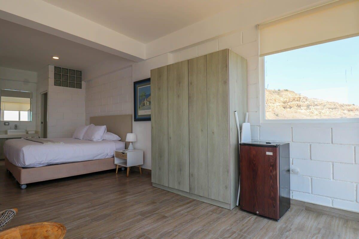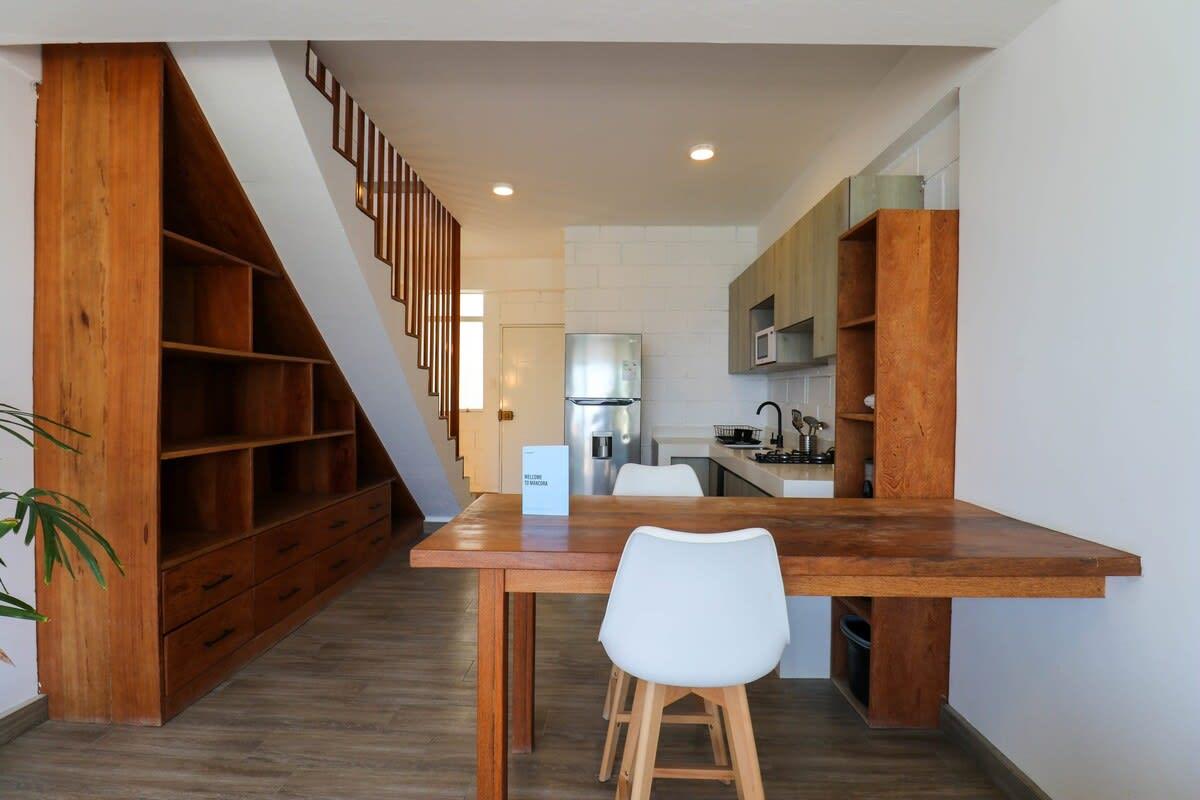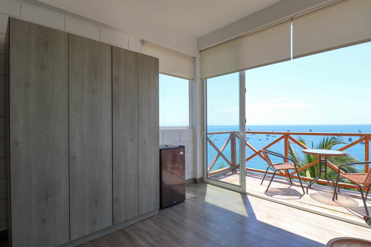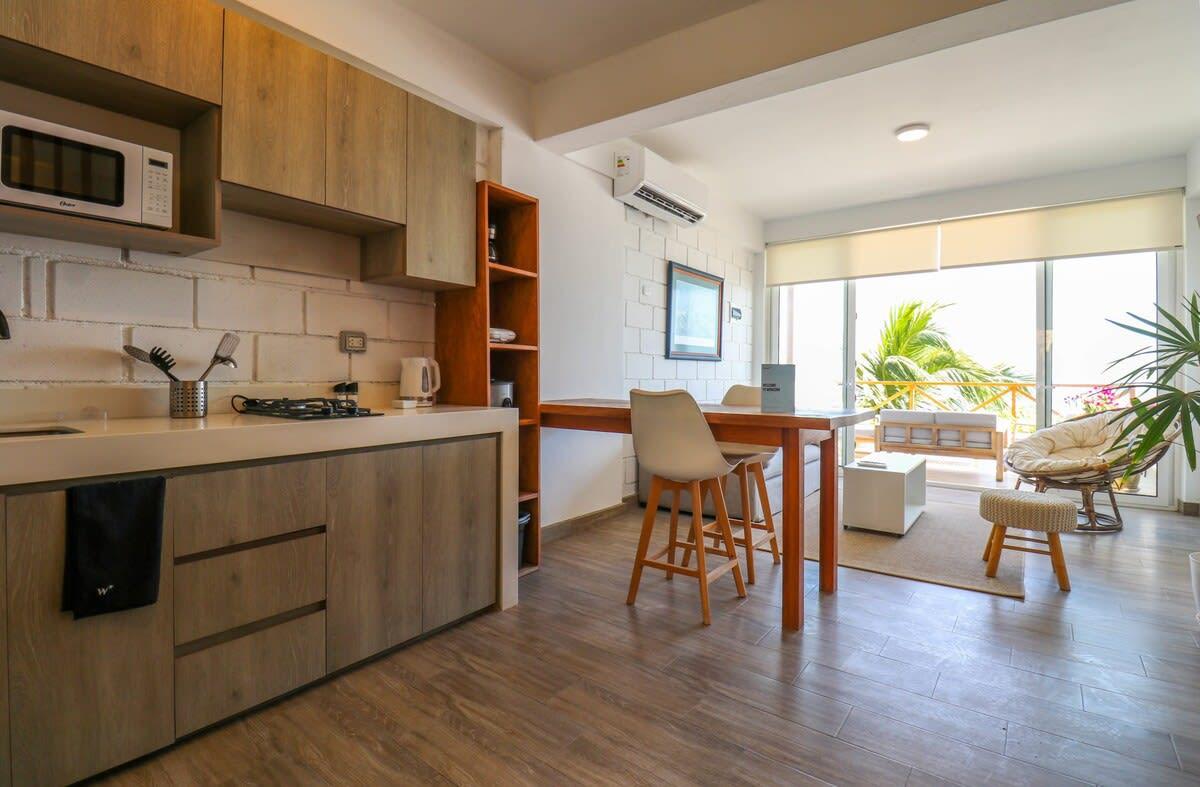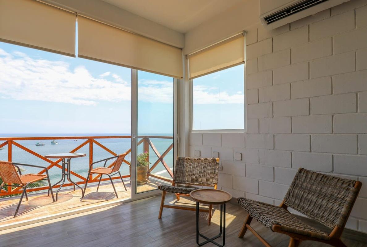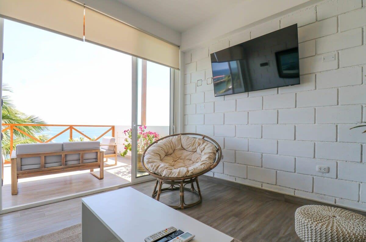 This beachfront property in Máncora offers ocean view lofts with air conditioning, fully equipped kitchens, and king-size beds. Enjoy direct beach access and a perfect blend of sophistication and relaxation. Attention! Regular water and power cuts occur. No water tank or generator available. Prepare for potential interruptions. Residents, please be aware of loud noise disruptions within the building.
