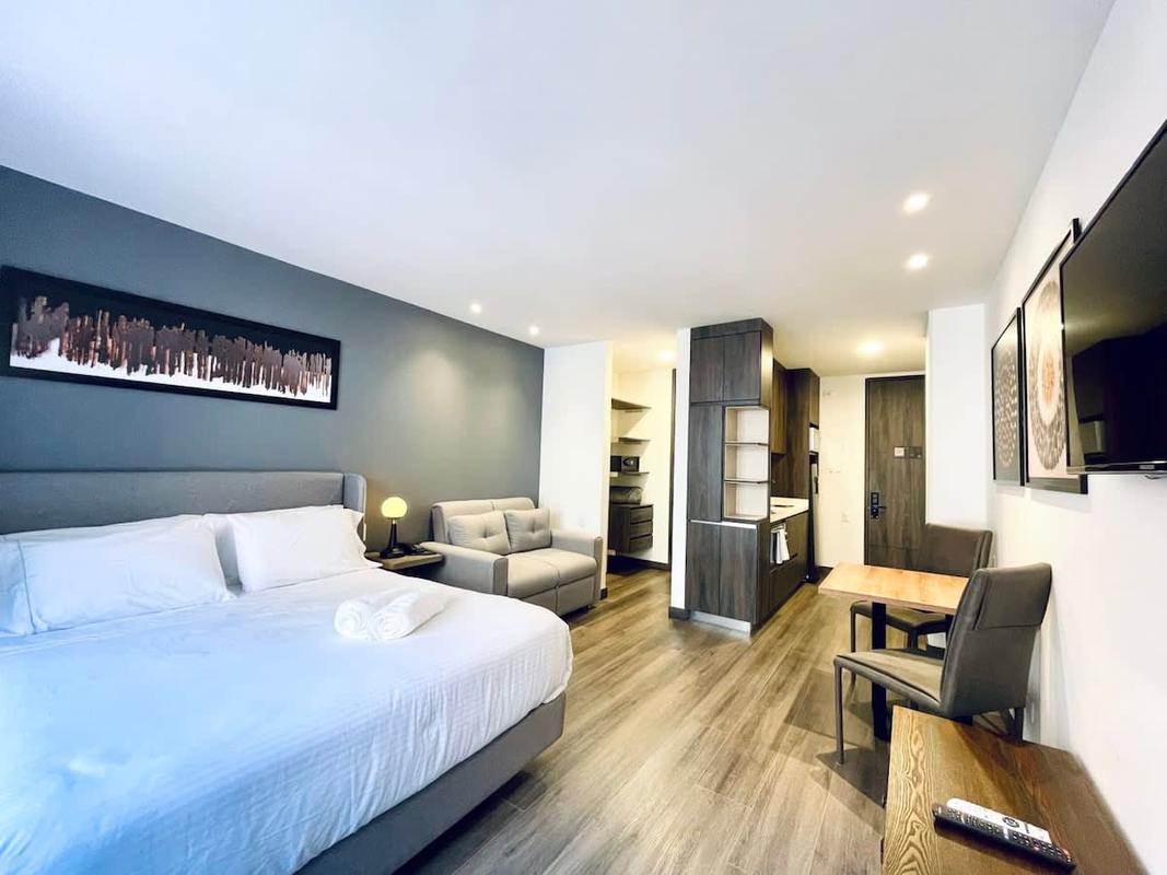 This apartment is in an Aparthotel multiunit listing, pictures are a reference. The actual apartment might be in a different floor or have a different view. Located in the best area of Bogotá. Ideal for business trips, families and groups of friends who want to stay in a spacious modern loft.