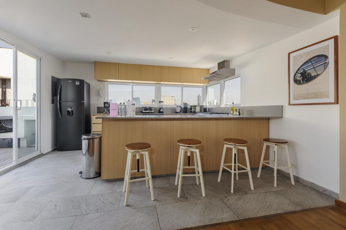 The 2BR apartment with terrace is located in the center of Mexico City's culinary and artistic zeitgeist. It is home to bicycling hipsters and increasing numbers of young professionals. Foodies descend on Mercado Roma for cool international food stalls, and street art lines the avenues.
