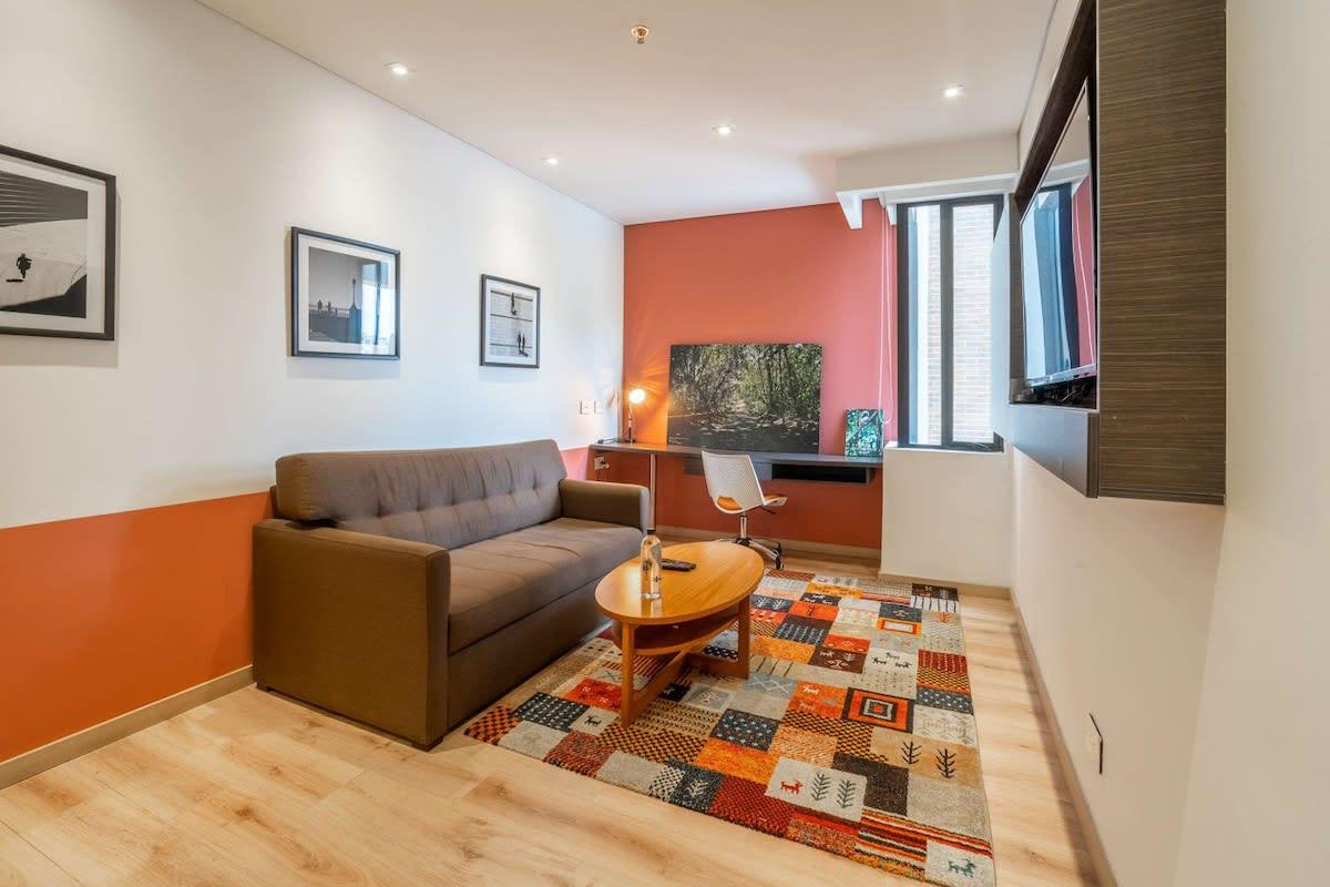 Located in the best area of Bogotá. Ideal for business trips, families and groups of friends who want to stay in a spacious modern loft. You will be walking distance from the shopping center, restaurants, top gyms, supermarkets, bars and coffee shops in the city. It's a concept, decentralized hotel that brings together travelers from across the globe into a network of apartments – spread around the world – with staple quality, design, educational purpose and sustainability.